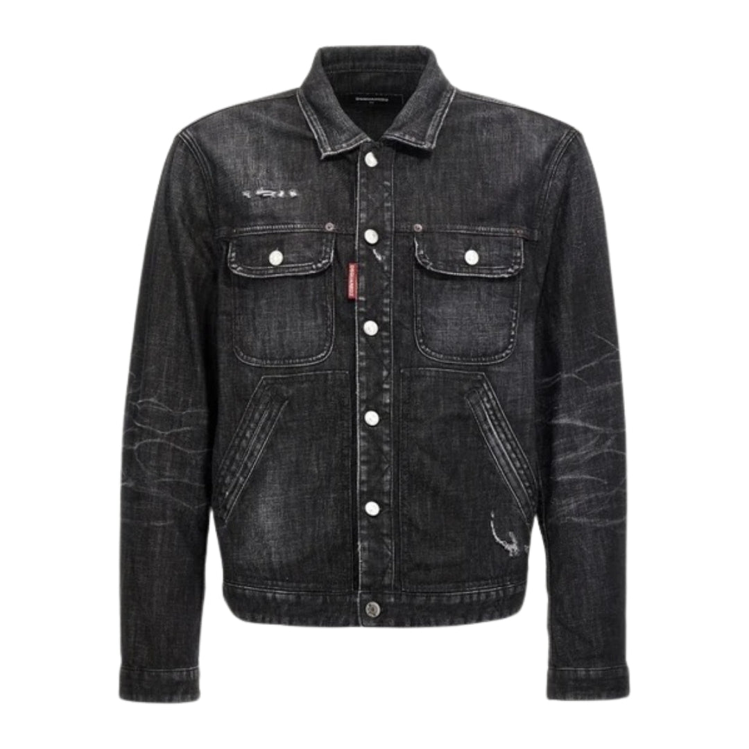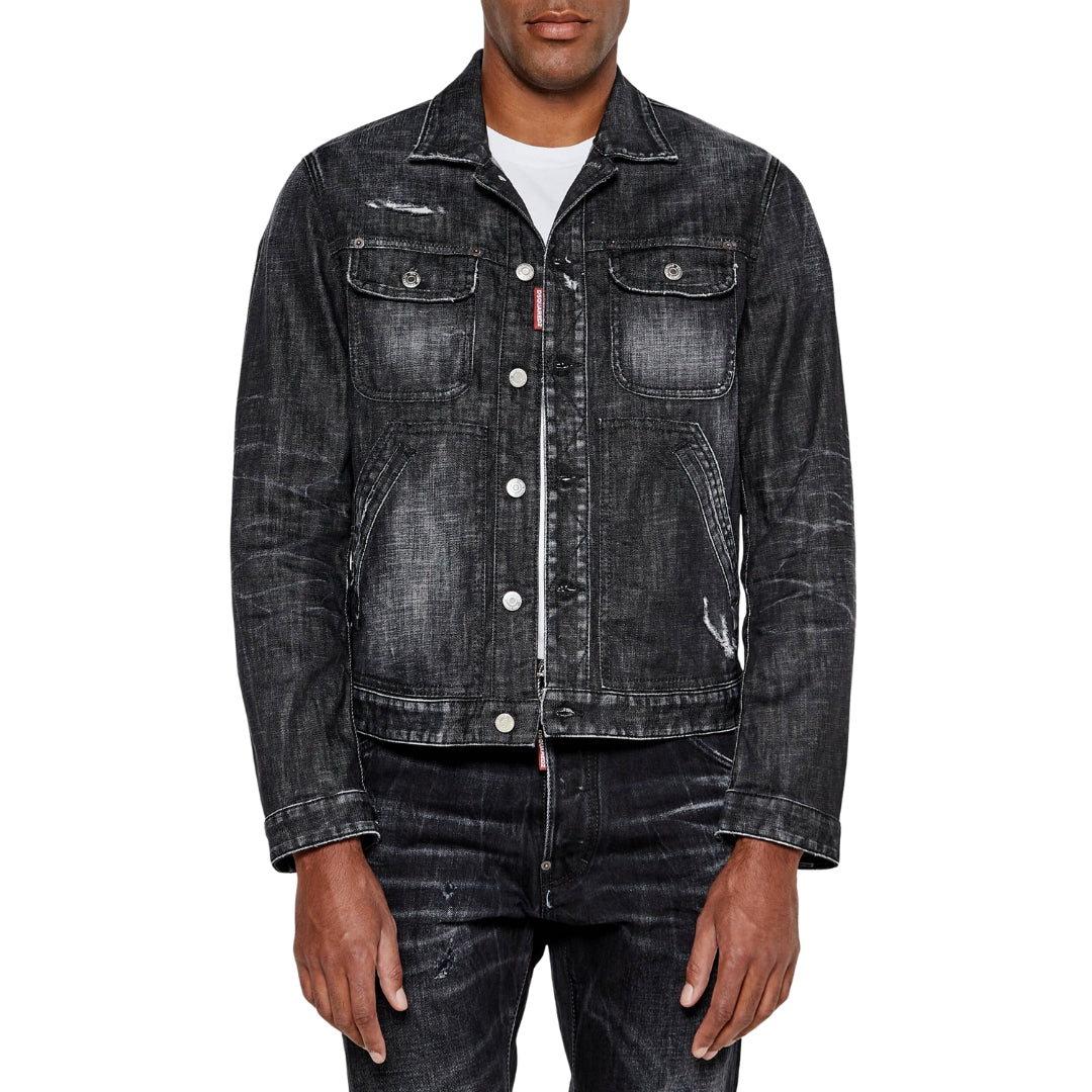 Elevate your denim game with this iconic Dsquared2 Easy Wash Jean Jacket in classic black. Crafted in Italy from premium 100% cotton, this jacket combines timeless style with exceptional quality that discerning fashion enthusiasts demand. The easy wash finish delivers a perfectly broken-in aesthetic straight from the wardrobe, eliminating the need for extensive wear-in time. Versatile enough to layer over everything from casual tees to smart shirts, this piece becomes an instant wardrobe essential. The structured fit and refined detailing showcase Dsquared2's signature design excellence, making it an investment piece that transcends seasonal trends. Whether you're dressing down weekend looks or adding edge to tailored outfits, this black denim jacket offers the sophistication and durability that justifies its place in any collection.