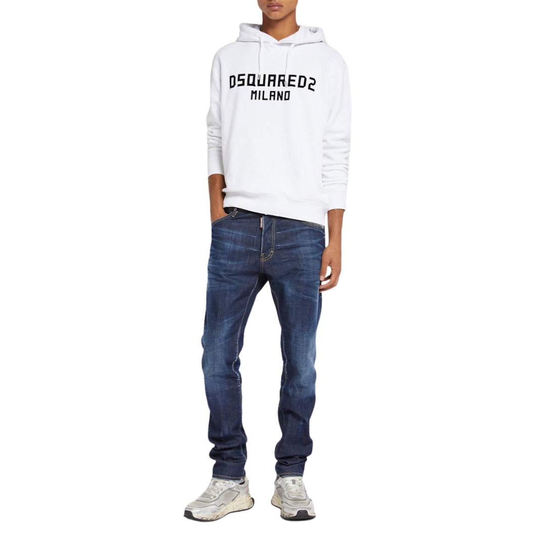 Elevate your casual wardrobe with this iconic Dsquared2 Milano Logo Cool Fit Hoodie, a masterpiece of Italian craftsmanship. Meticulously made in Italy, this premium piece features the distinctive Dsquared2 branding with striking green, red, and black print details that command attention. Constructed from 100% pure cotton, it delivers exceptional breathability and comfort for year-round wear, while the cool fit silhouette ensures a flattering, contemporary look. The premium fabric quality resists shrinkage and maintains its vibrant colours wash after wash, making it a durable investment in your style. Perfect for layering or wearing solo, this hoodie seamlessly transitions from weekend relaxation to casual outings, offering the luxury and sophistication Dsquared2 is renowned for.