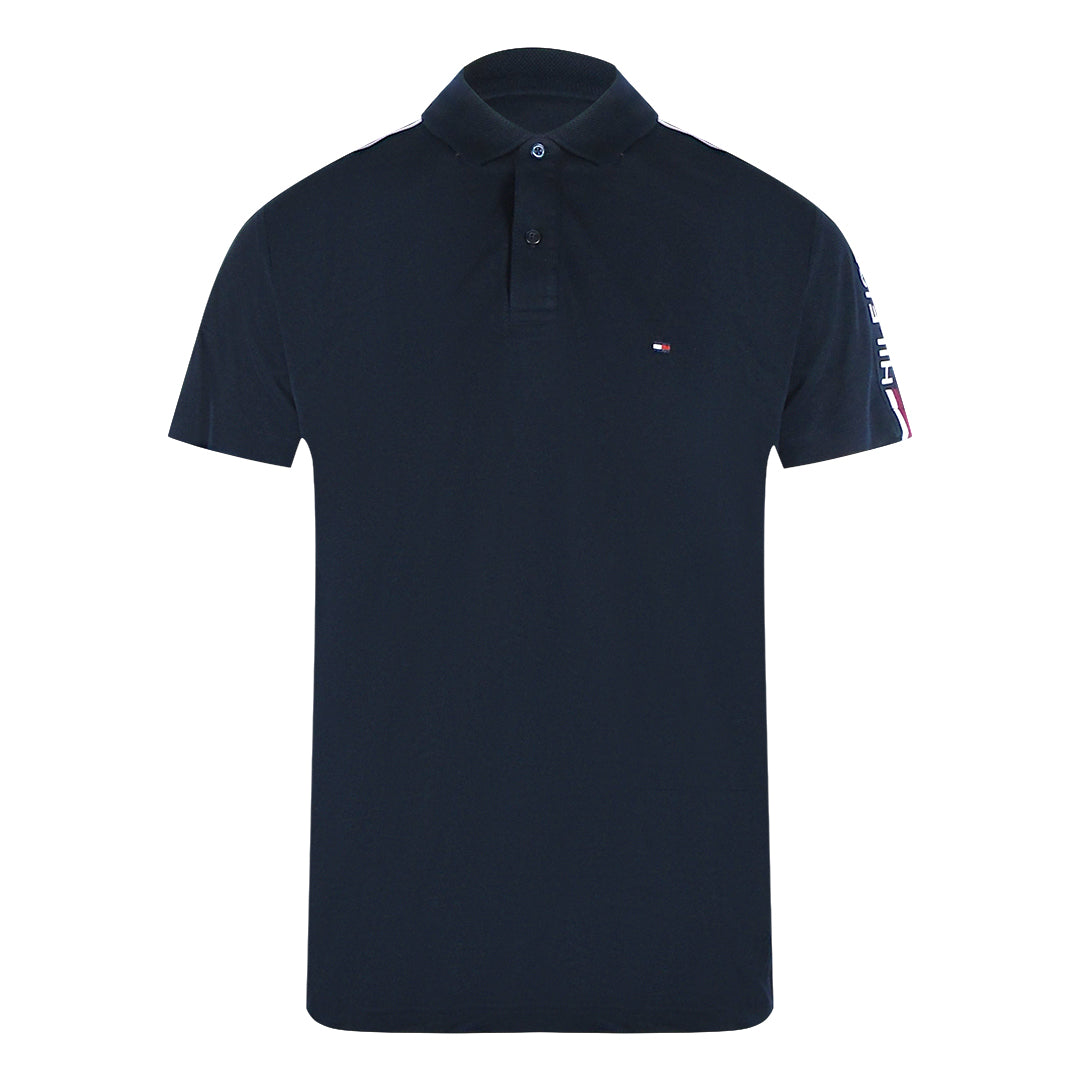 Elevate your casual wardrobe with the Tommy Hilfiger Taped Sleeve Navy Blue Polo Shirt. Crafted from 100% soft cotton, this shirt offers lasting comfort and breathability. Its classic collared design with a double button fastening ensures a polished look, while short sleeves keep you cool throughout the day. Distinctive Tommy Hilfiger tape runs across the shoulders, complemented by the iconic TH badge on the left chest and striking Hilfiger text on the upper left sleeve, adding a sleek, modern touch. Perfect for both relaxed weekends and smart casual occasions, this polo delivers timeless style and quality you can trust.