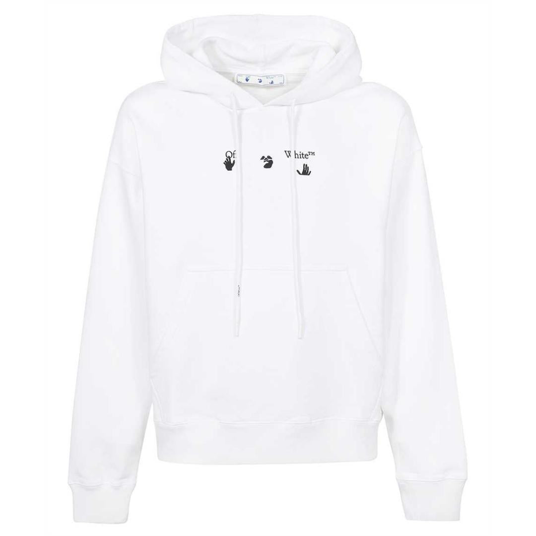 Off-White Marker Stencil Logo White Hoodie. Off-White Marker Stencil Logo White Hoodie Sweater. Off-White Branding On The Centre Chest. Large Stencil Style Marker Cross Logo On Back. Drawstring Adjustable Hood, Large Front Kangaroo Pocket. OMBB085F21FLE0170110, 100% Cotton, Made In Portugal
