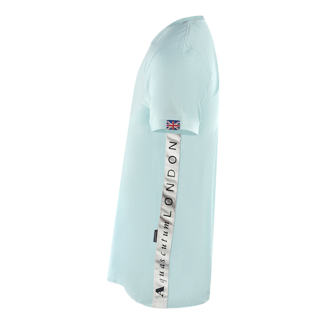 Aquascutum London 1851 Tape Logo Sky Blue T-Shirt. Make a statement with the iconic "1851" Logo Blue T-Shirt from Aquascutum. This classic blue tee features the signature Aquascutum logo, perfect for the streetwear enthusiast who desires sophistication and style. Let your style stand out with this timeless classic.. London 1851 Printed Across The Chest, Short Sleeve, Crewneck. 100% Cotton, Regular Fit, Fits True To Size. Taped Branding Down Left Side Seam, British Flag Badge On Left Sleeve. Style Code: T00123 78