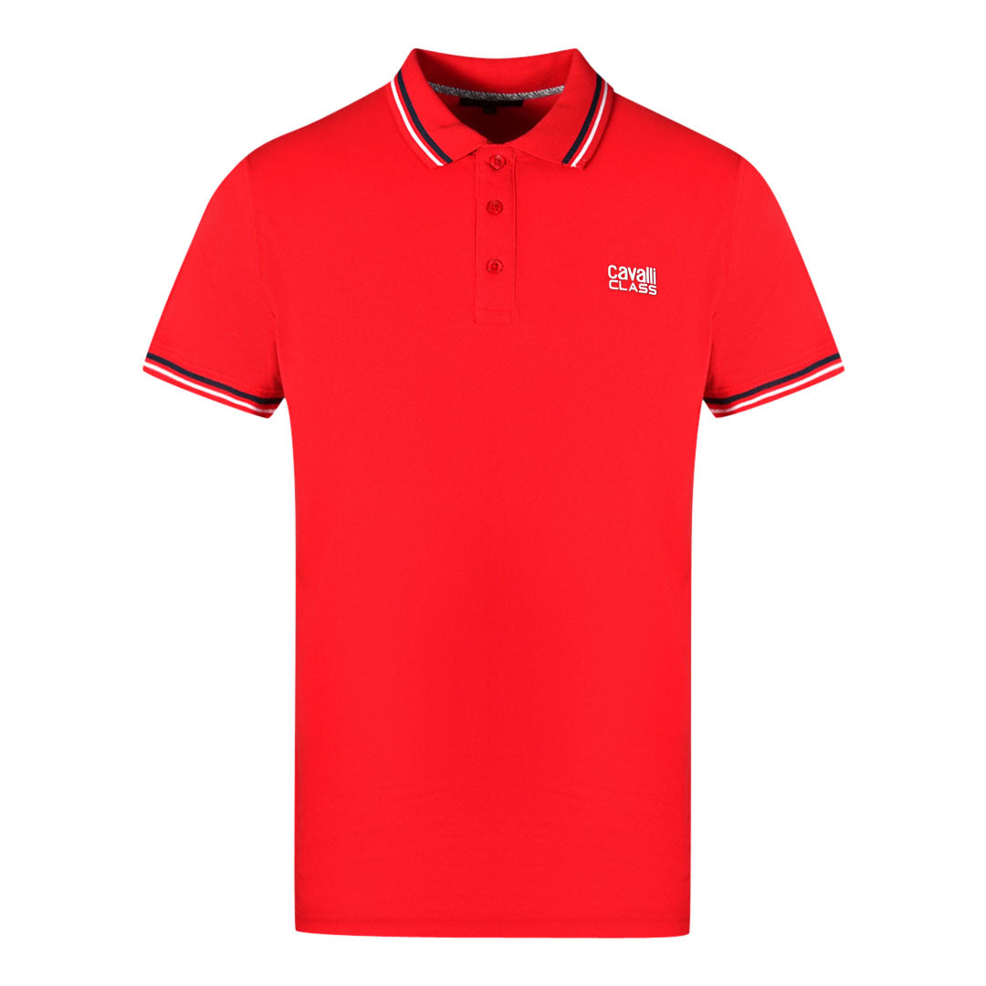 Cavalli Class Twinned Tipped Collar White Logo Red Polo Shirt