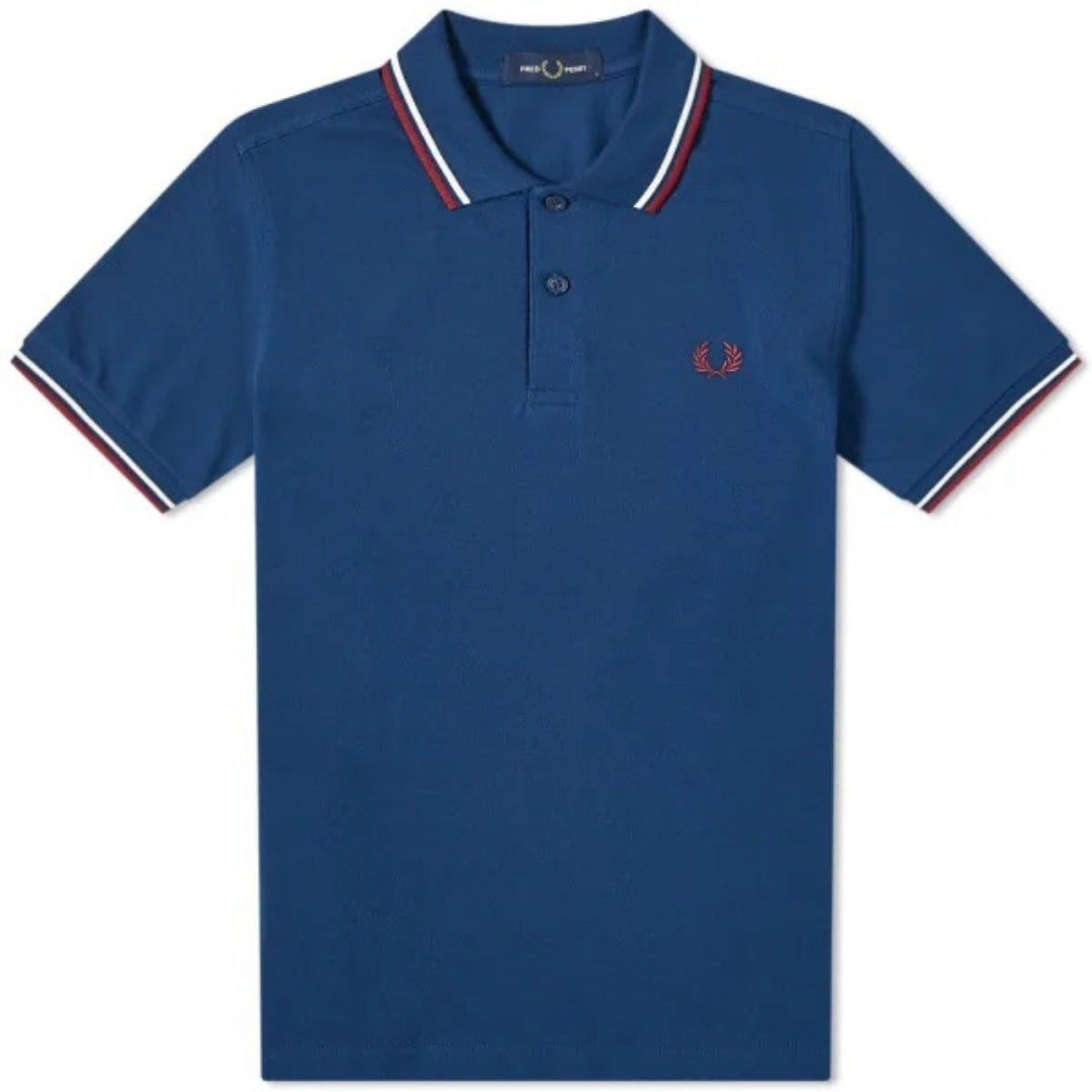 Fred Perry Twin Tipped M3600 588 Blue Polo Shirt. Fred Perry Blue Polo Shirt. Pattern On Collar. Button Closure At The Neck. Style: M3600 588. 100% Cotton