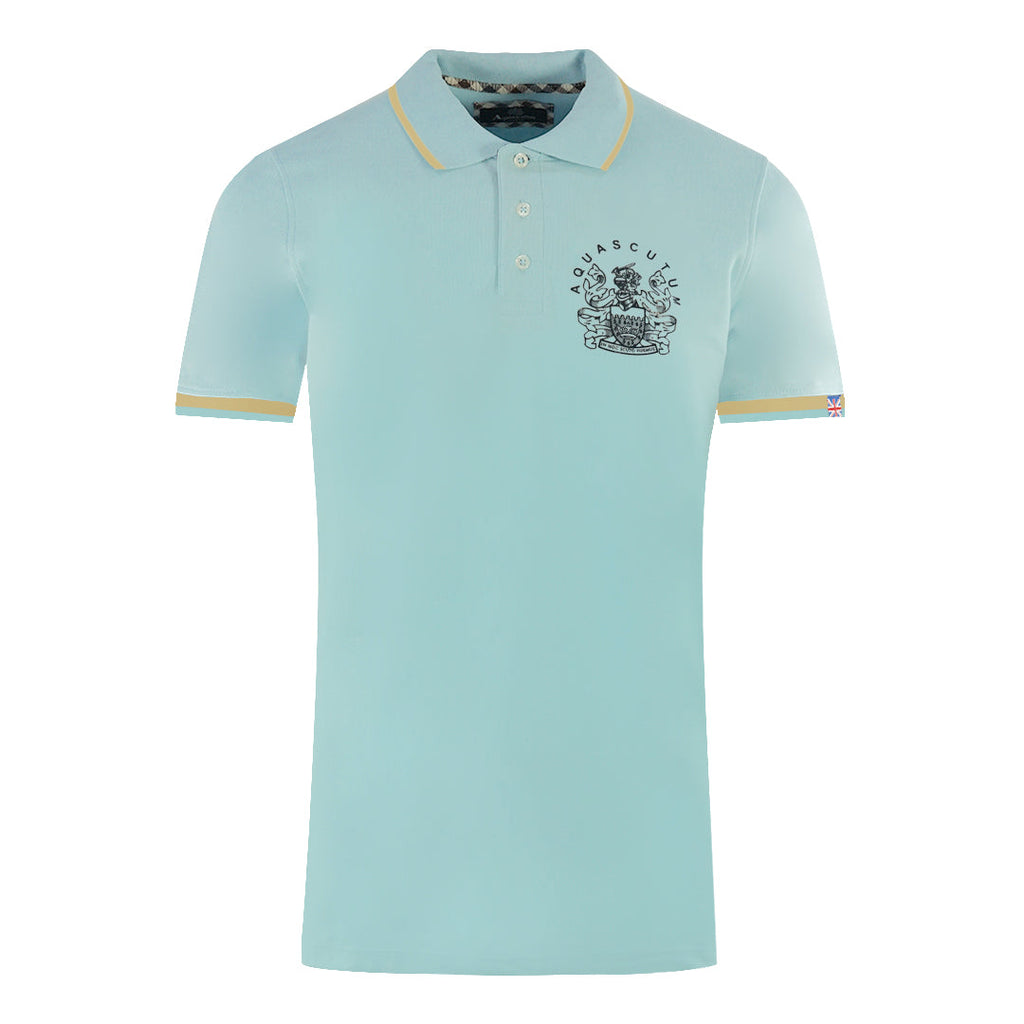Aquascutum Aq 1851 Embroidered Tipped Light Blue Polo Shirt