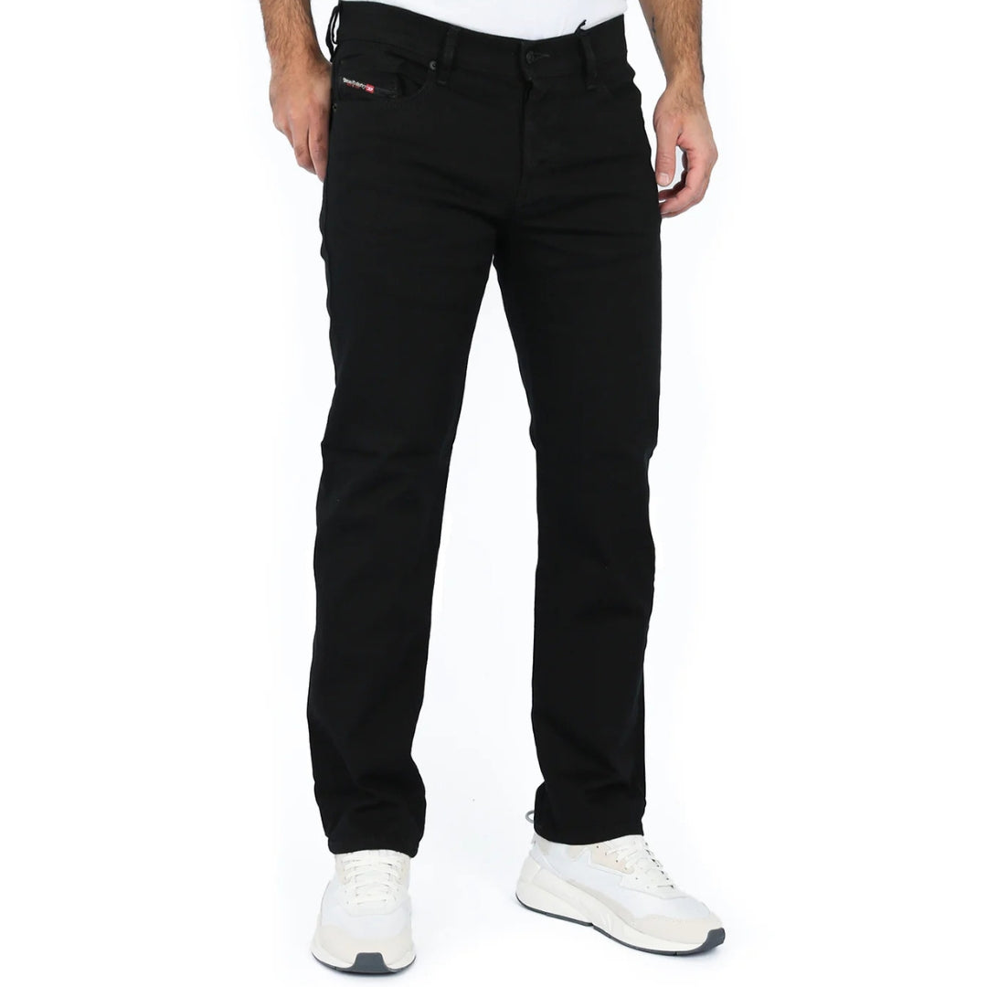 Diesel Black Denim Pants , Button Fly, 98% Cotton 2% Elastane, Straight Leg, Regular Fit, Brand Embossed Diesel Badge