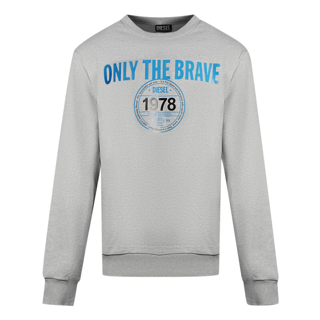 Diesel S-Girk-K13 9CB Grey Sweatshirt. Diesel Grey Crew Neck Jumper. Large Diesel Branding. Regular Fit, Fits True To Size. Elasticated Sleeve and Waist Endings. Style: S-Girk-K13 0HAYT 9CB