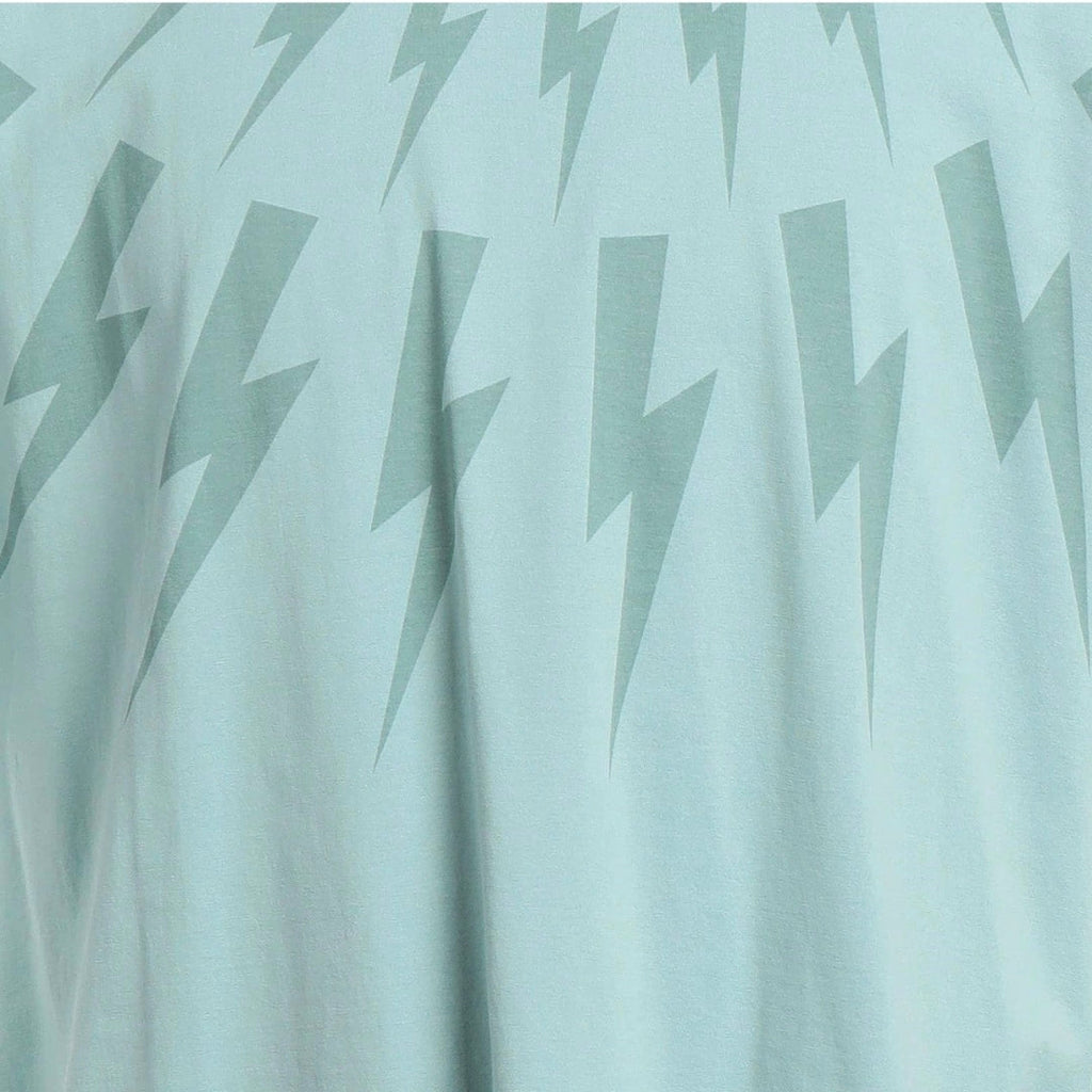 Neil Barrett Fair Isle Thunderbolt Oversize Blue Tee Oversize Fit, Dark Jade Colour Signature Lightning Bolt Branding, Ribbed Crew Neck 100% Cotton, Made In Portugal