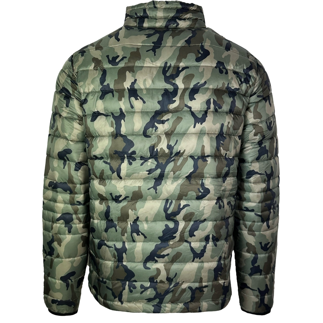 Plein Sport Plain Padded Camo Green Jacket. Stay sleek and stylish with the Plein Sport Padded Green Jacket. The plain design adds a touch of sophistication, while the padded interior ensures warmth and comfort. Make a bold statement with the eye-catching logo on the back on the inside. Perfect for any fashion-forward individual!. Zip Closure Front Pockets, 2 Zip Closure Pockets, Central Zip Closure. Coat, Filling: 100% Polyamide, Lining : 100% Polyester. Padded Jacket, Zip Closure. Style: UPPS05D 34