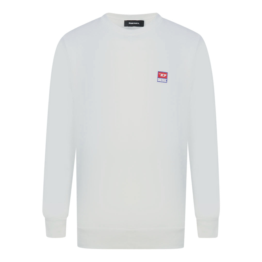 Diesel S-Gir-Div-P Pacth Logo White Sweater. Diesel White Jumper. 100% Cotton, Small Graphic On Left Breast. Crew Neck, Long Sleeves. Elasticated Neck, Sleeve Ends and Bottom. Style: S-GIR-DIV-P 0IAJH 100