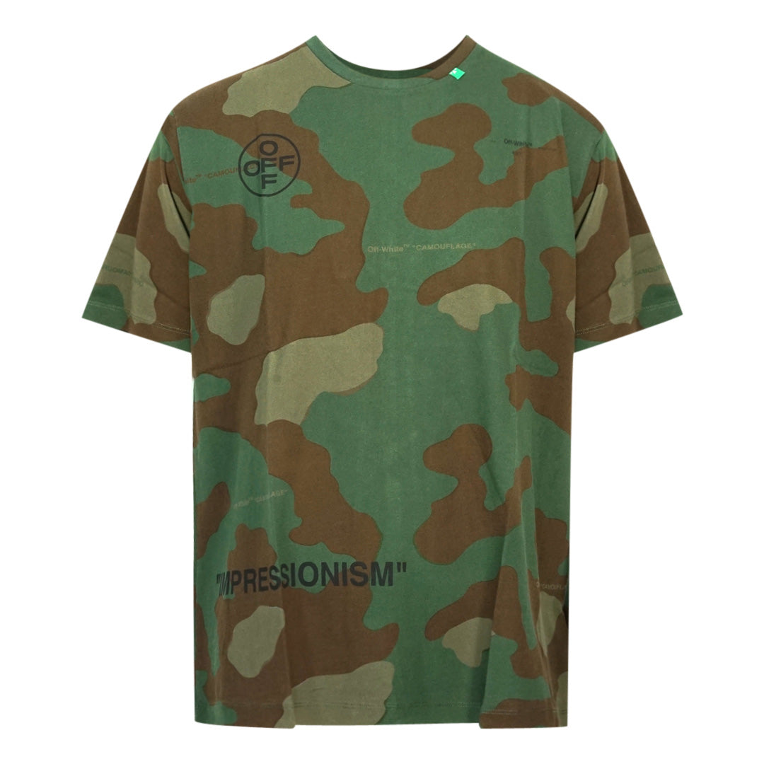 Off-White Marker Arrow Logo Green Camo T-Shirt. Off-White Green T-Shirt. Off-White Logo On Front Chest. Oversized Fit. 100% Cotton. Style Code: OMAA038R191850169910