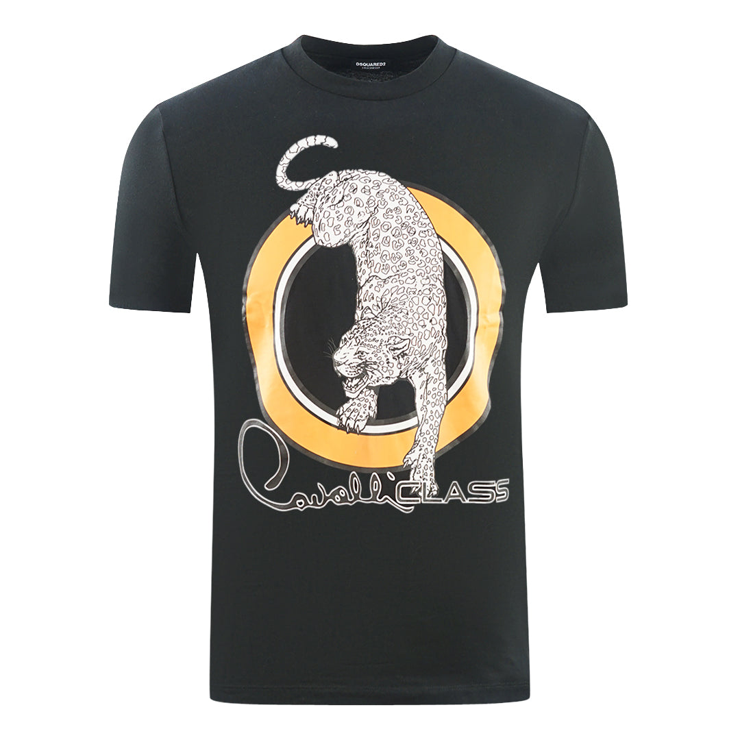 Cavalli Class Circular Leopard Logo Black T Shirt