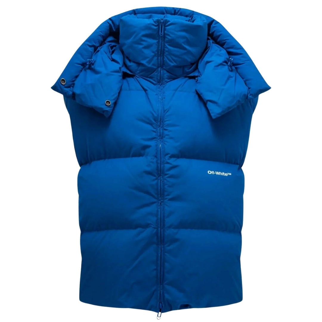 Stay warm and stylish in the Off-White Blue Gilet. This luxurious Gilet is crafted with lightweight, insulated fabric that retains heat and protects against the elements. Don't sacrifice style for comfort - make a statement!, Filling: 100% Duck Down, Upper Matierl: 100% Polyester, Regular Fit, Zip Closure, Blue, Plain Gilet, Blue Gilet
