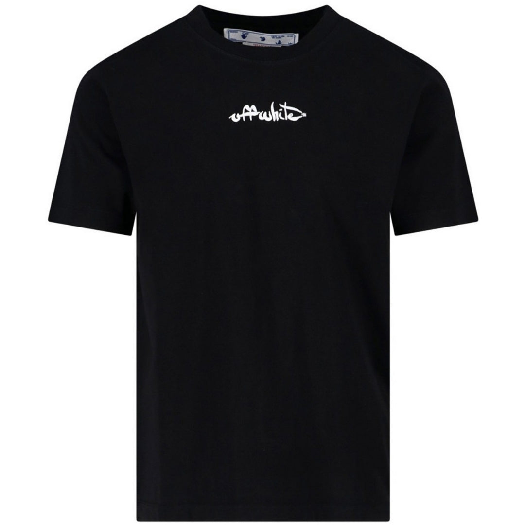 Off-White Script Logo Slim Fit Black T-Shirt. Off-White Black Tee. Off-White Script logo. Crew Neck, Short Sleeves. 100% Cotton, Made In Portugal. OMAA027F22JER0051001