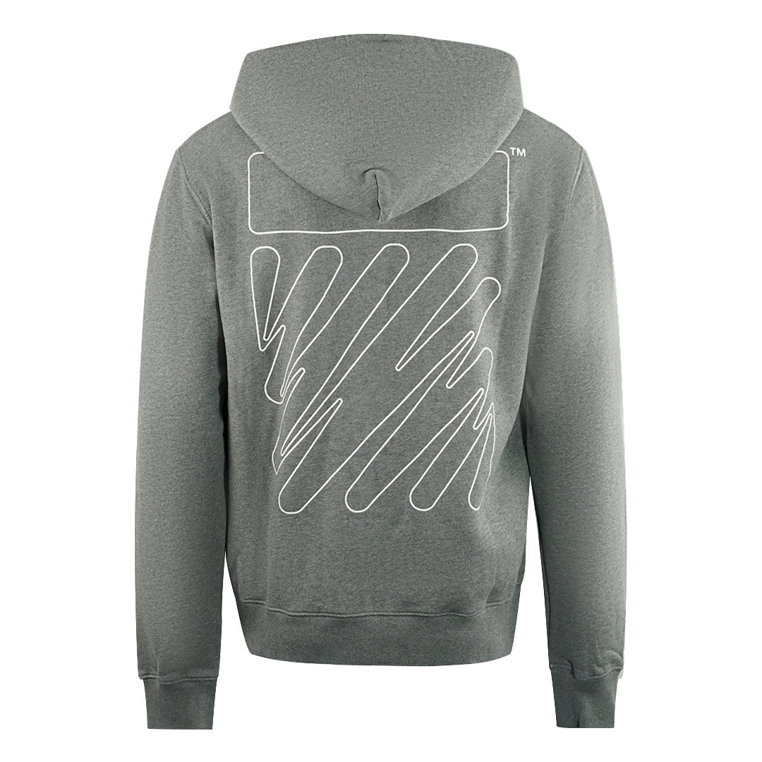 Off-White Wave Outline Diag Design Grey Slim Zip-Up Hoodie. Be bold & stylish in the Off-White Hoodie. This 100% cotton hoodie features the unique Off-White logo on the left chest, the iconic Diag logo on the back, and an adjustable drawstring hood. With elasticated waist and sleeve endings and a large front pocket, this is the perfect combination of comfort & style.. Off-White Logo on Front Left Chest, Off-White Grey Hoodie, Slim Fit. Diag Logo On Back, 100% Cotton, Long Sleeve, Elasticated Waist and Sleeve Endings. Drawstring Adjustable Hood, 2 Front Pocket, Zip Closure. Style Code: OMBE013C99FLE0070801