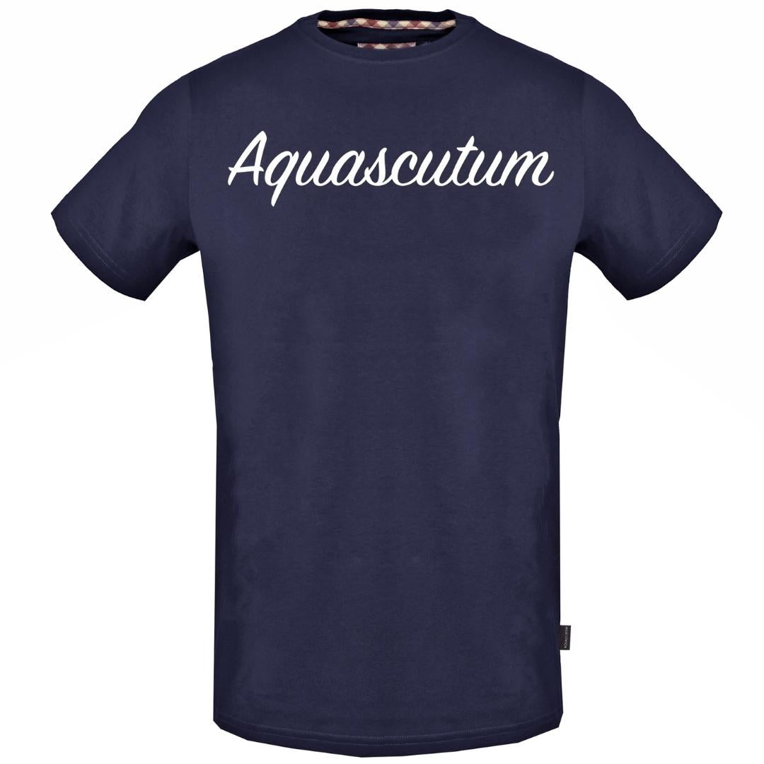 Aquascutum Signature Logo Navy T-Shirt. Aquascutum Navy Tee. Crew Neck, Short Sleeves. Stretch Fit 95% Cotton 5% Elastane. Regular Fit, Fits True To Size. Style Code: TSIA131 85