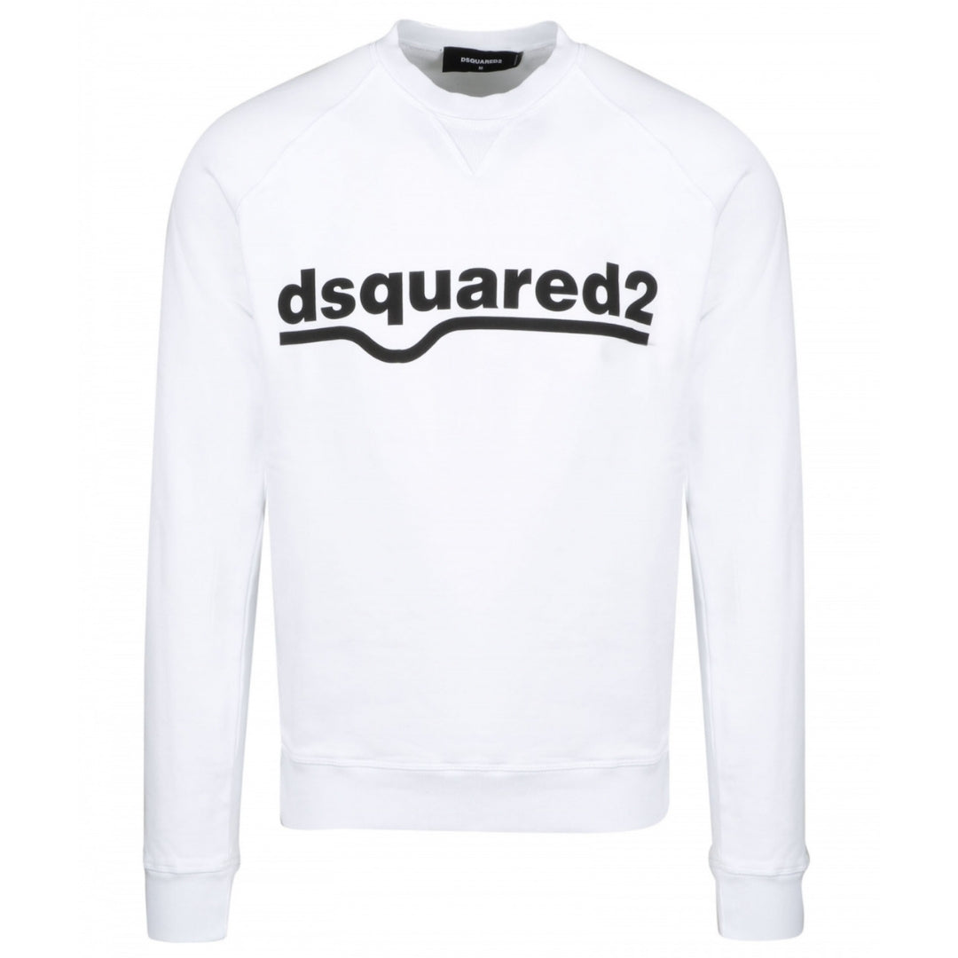 Dsquared2 Classic Raglan Fit Logo White Sweater. Dsquared2 White Jumper. 100% Cotton, Made In Italy. Elasticated Neck, Sleeve Ends and Bottom. Large Logo Print. Style Code: S74GU0460 S25030 100